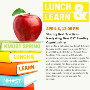 Join NMOST on Thursday, April 9 for a Lunch & Learn session: Overview and Application Strategy for the HB2-Funded Out-of-School Time Program.